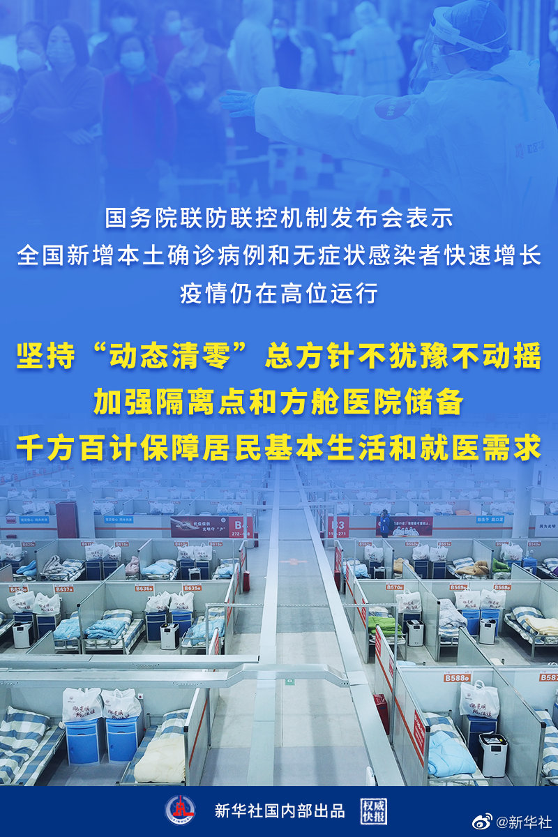 国务院联防联控机制最新信息显示,当前,全国新增本土确诊病例和无症状感染者快速增长,部分地区社区传播仍未阻断,疫情仍在高位运行,防控形势严峻复杂。坚持“动态清零”总方针不犹豫不动摇,快字当头,从严从实抓好疫情防控工作。(记者董瑞丰、李恒、顾天成,海报设计杨轶群)
