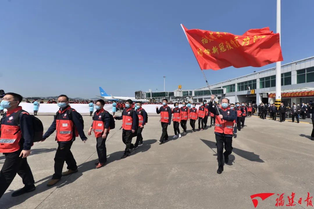 援沪医疗队从福州、厦门分批出发。省领导罗东川、林宝金、崔永辉、吴偕林、梁建勇、李德金、林文斌分别参加送行仪式。