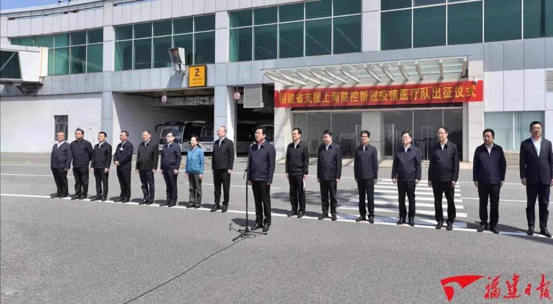 闽沪情同手足,携手共抗疫情。4月7日,我省支援上海防控新冠疫情医疗队迅速集结完毕,出征上海驰援抗疫一线。省委书记尹力参加出征仪式并为医疗队授旗,代表省委、省政府向医疗队全体队员表示崇高敬意和衷心感谢,为白衣战士加油鼓劲,鼓励大家发扬伟大抗疫精神,与上海人民并肩作战,齐心协力打赢这场没有硝烟的战役。省长赵龙作动员。省政协主席崔玉英出席。