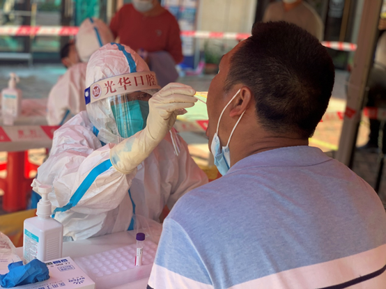 光华口腔支援核酸检测的医护人员在进行采样