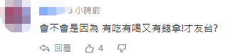 有网友质疑,“会不会是因为有吃有喝又有钱拿!才‘友台’?”↓