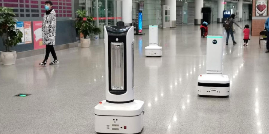 针对大型场所疫情防控常态化需求,中国电子旗下中电熊猫推出在公共场所可人机共处使用的光触媒紫光消杀机器人,以及在医用级消毒场所人机分离使用的紫外消毒机器人,投入疫情防控一线。两款机器人集过滤、紫外线杀菌、纳米技术催化消毒等多种净化技术于一体,通过脉冲紫外线的反射光、滤光聚焦照射物体表面及空间环境强辐照消杀,能够消灭99.99%以上的有害病原体。同时,机器人以自主研发的AGV平台为载体,通过自主导航技术和AI环境识别技术,实现精准定位、稳定避障,可自动规划工作路径并判断工作环境所需的消毒时间,能够广泛用于政务大厅、写字楼、商场、机场、高铁站、工厂车间等大型场所,实现对公共空间360°无死角实时消杀。