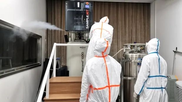 当前,上海仍面临新冠疫情的严峻考验,对处于学校科研第一线的二级部门和科研工作者来说,更是遭遇前所未有的挑战。有些特殊大型仪器必须要进行定期维护,才能保证复工、复学、复研后为科研工作提供正常的测试服务。超导核磁共振仪即是其中一类需要进行定期维护的大型仪器设备。这项工作在平时看来相对容易,但在当前因疫情防控的需要变得异常艰难。