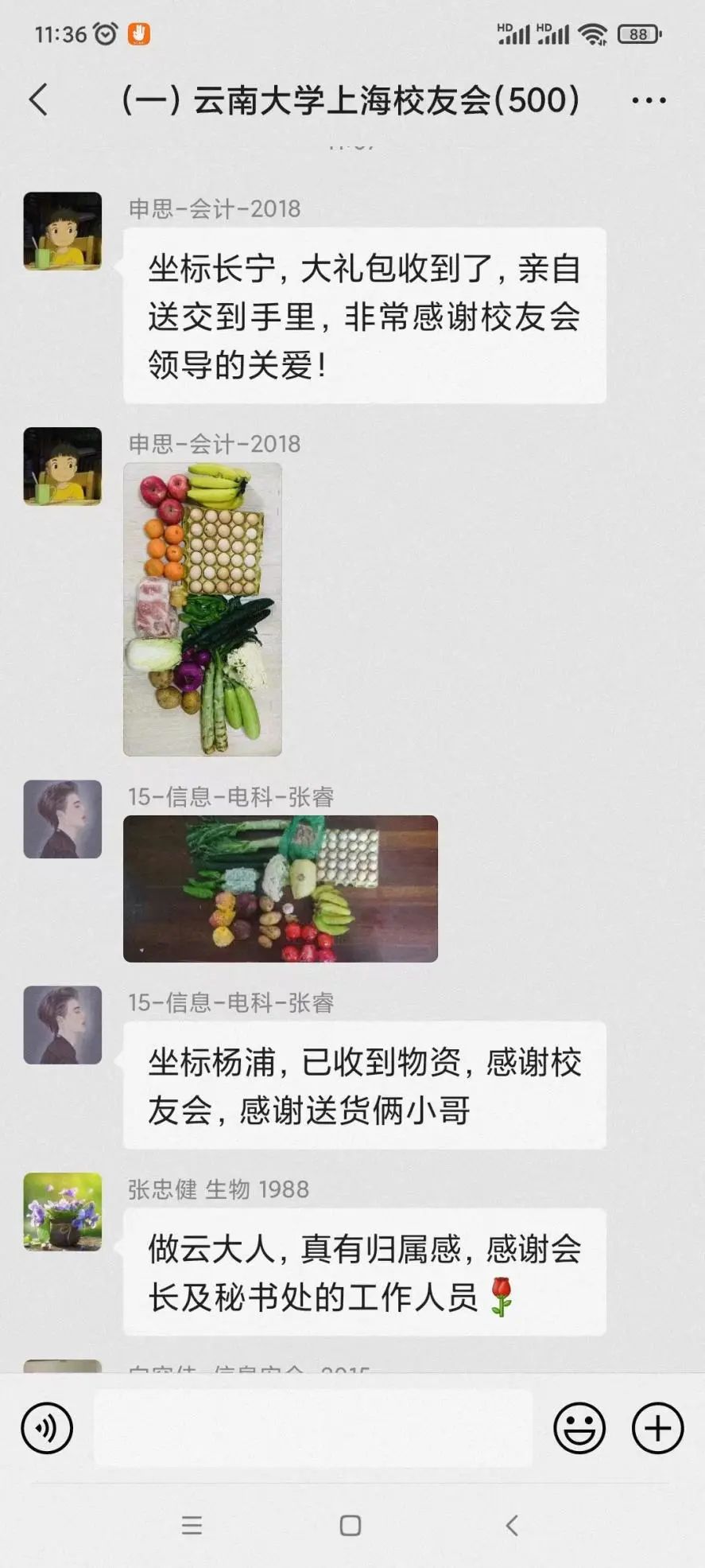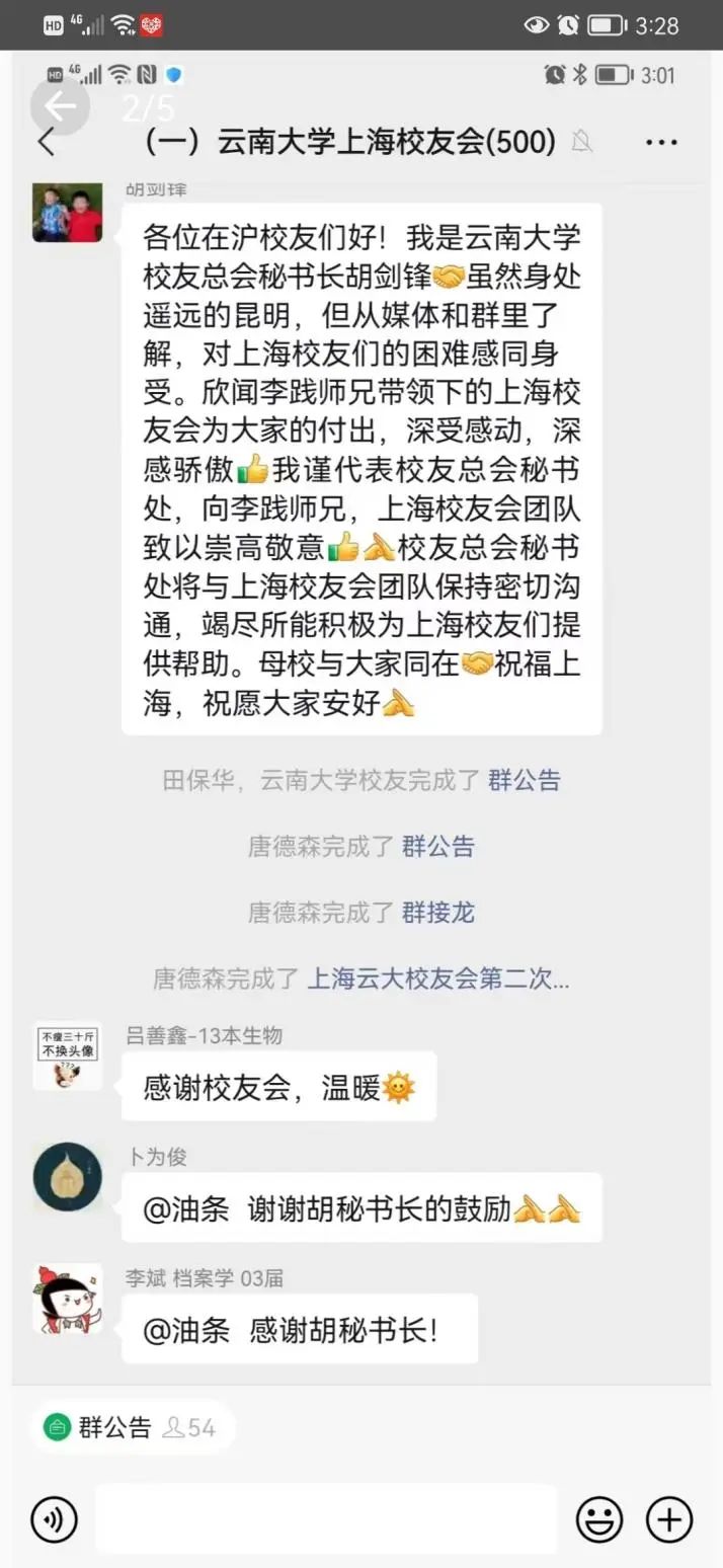 4月11日上午,秘书处向云大上海校友会两个微信群的700多位校友和云大附中上海校友群80多位校友发布了物资派发通知,得到广大校友的积极响应。