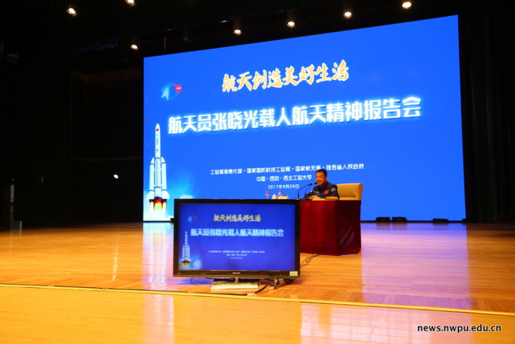 (2017年4月24日,英雄航天员张晓光做客西工大翱翔名家讲堂)