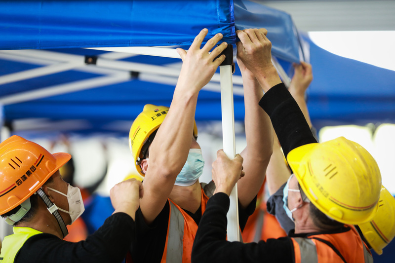 整个过程“一气呵成”。4月9日5时,经过先锋队伍的连夜施工,1号仓库完成了1万平方米地板铺设。15个小时之后,近2000多名建设者开启大规模施工,24小时之后,5.5万平方米地板全部铺设完成;48小时内,5030张床位搭建和内部结构施工全部完成。紧接着,空调、消防、管道、电气、通讯、道路水泵施工建设改造启动……