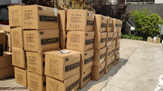 饿了么、壹基金等爱心组织捐赠的防疫物资