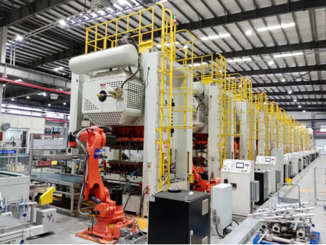 在莱阳开发区的海尔智慧厨房电器有限公司的总装车间内,十几个机械臂在生产线上挥舞着,一派热火朝天生产场景。