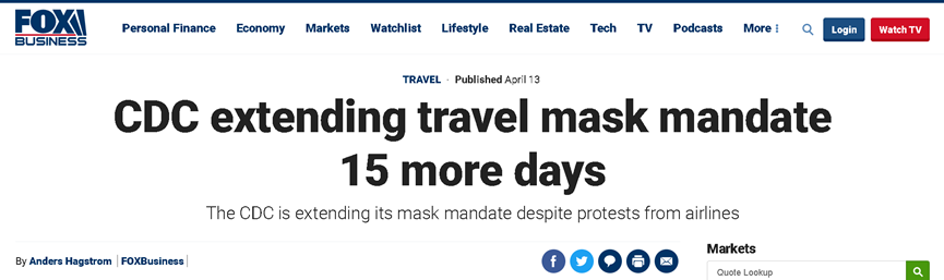 此前,由于飞机和火车等公共交通工具的密闭空间造成的疫情传播风险很大,美国疾病控制与预防中心(CDC)颁布了搭乘此类交通工具需要佩戴口罩的强制令。尽管这一强制令在今年3月就将到期,但鉴于疫情仍然严峻,CDC上周决定将这一强制令延期到5月。