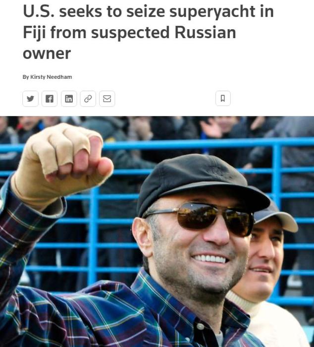 中新网4月19日电 据路透社报道,斐济检察总长当地时间19日提交的限制令显示,美国正试图扣押停泊在斐济的一艘超级游艇。该游艇被普遍认为系俄罗斯富豪苏莱曼·克里莫夫(Suleiman Kerimov)所有,而克里莫夫本人正受到美国和欧盟的制裁。