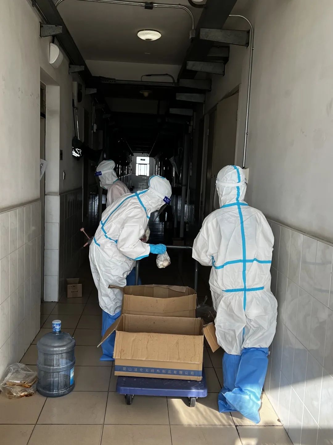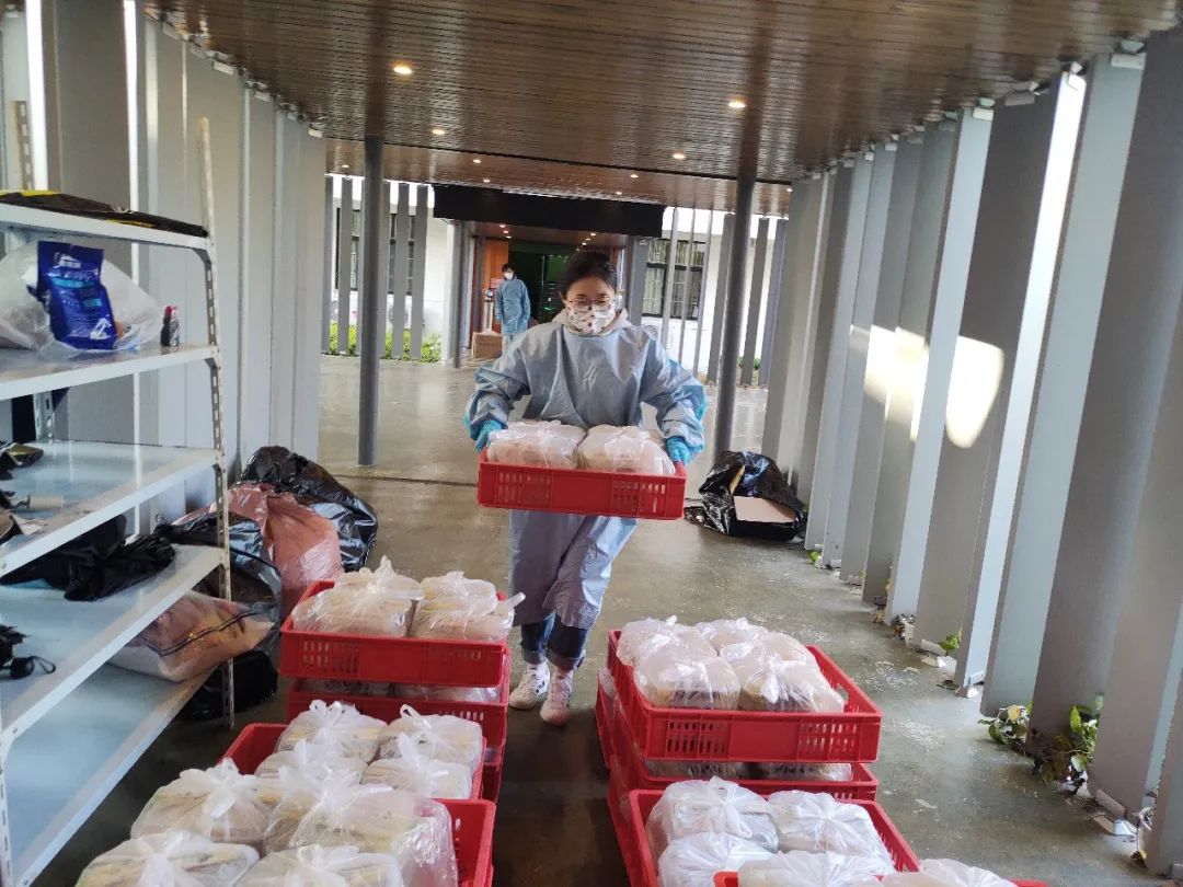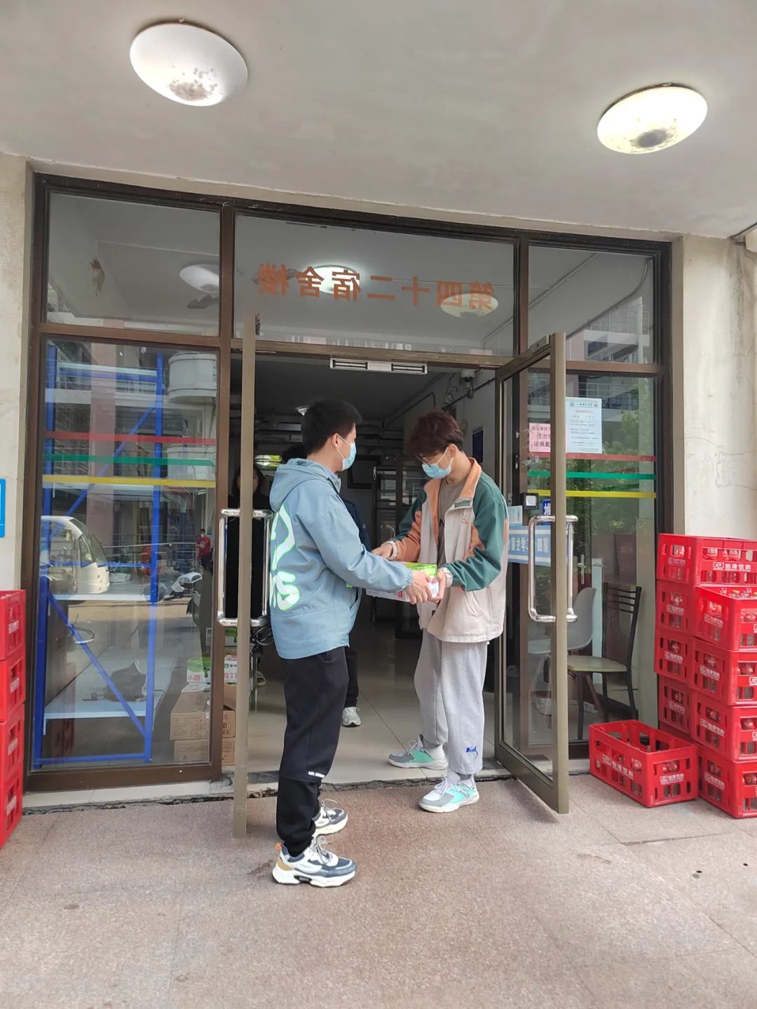 他们还负责统计宿舍楼宇内同学们生活必需用品和紧急用品的情况,并将可口的饭菜及物资分发到同学们手中。