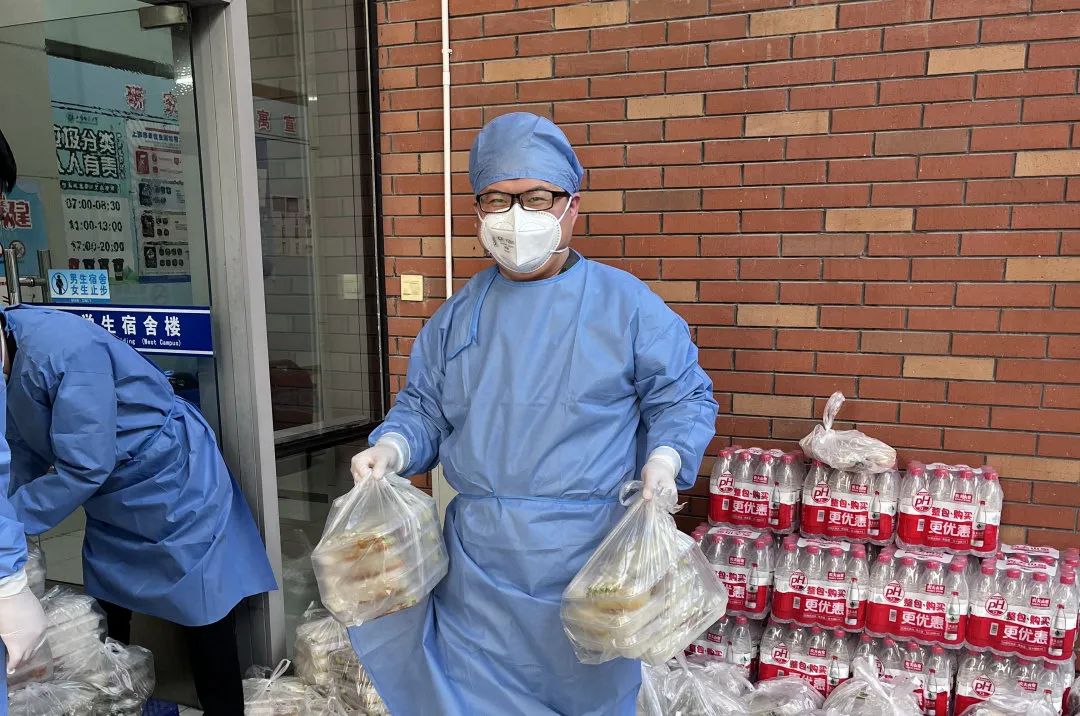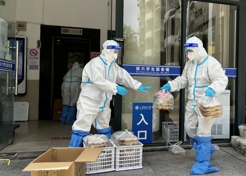 辅导员们驻守宿舍楼,核对每次核酸数据,为同学们分发餐食、物资,楼道消杀……