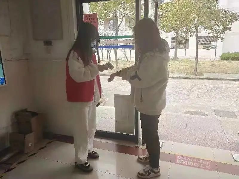 志愿者们分工协作,职责到寝,提醒同学们戴口罩做好防护,做到了全过程、不间断的宿舍楼宇防疫安全巡视。