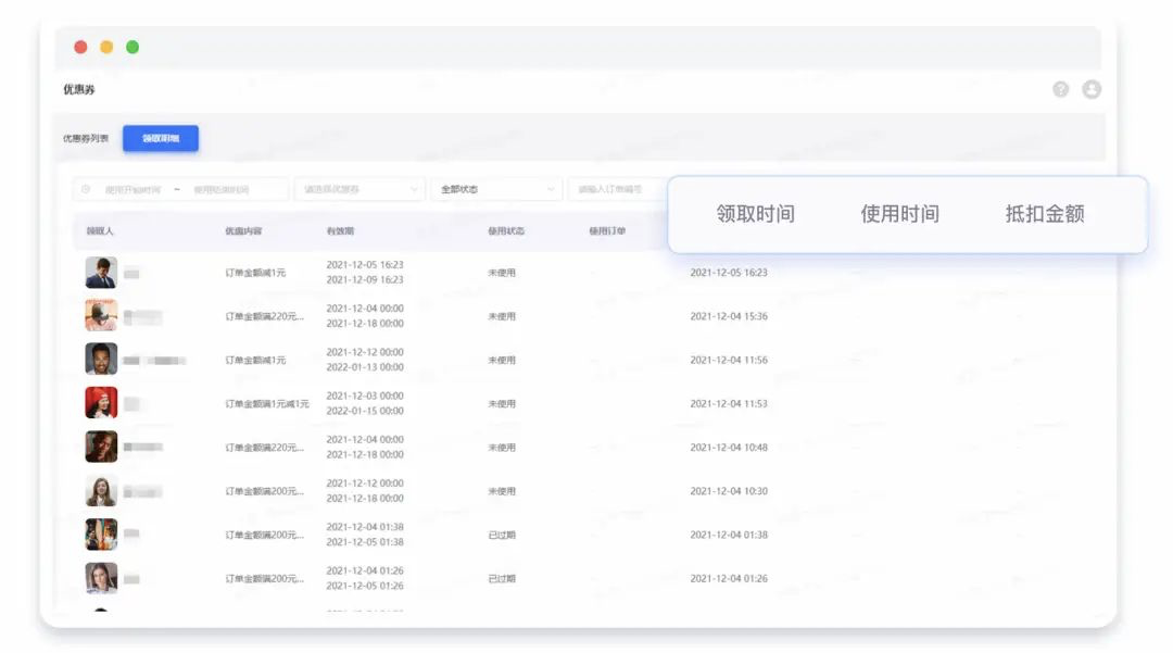 [优惠券使用统计]