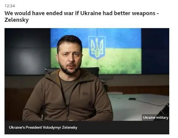 BBC:泽连斯基说“如果乌克兰有更好的武器,我们早就结束战争了”