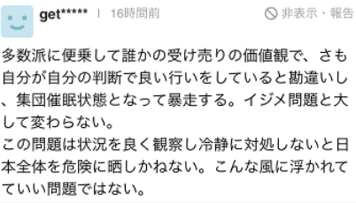 有人评论该公司的做法称,“顺着多数派,他们标榜道听途说的价值观,错以为是在基于自身判断做好事,实则陷入被催眠的状态,跟霸凌别无两样。”并警告称,“如果不能做到仔细观察并冷静地应对这个问题(俄乌冲突),将可能让全日本陷入危险。这个问题上不能感情用事。”