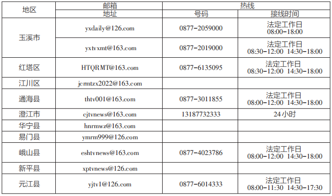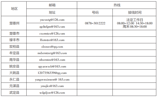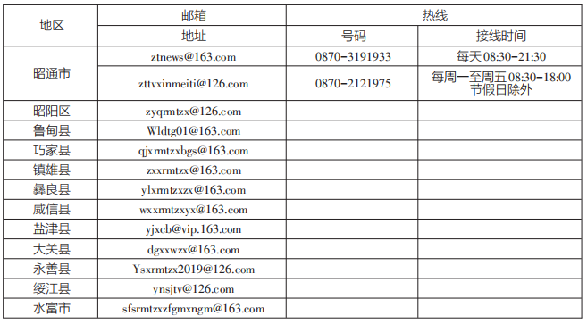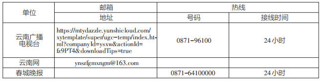 为深入贯彻落实《云南省推进作风革命加强机关效能建设的若干规定(试行)》,即日起,我省将全面开展“作风革命 效能建设”媒体问政工作。全省各级媒体将面向社会公众开设“作风革命 效能建设”问政专区,采用电子邮箱、广播电视专题节目、热线电话等多种形式畅通群众、基层、企业诉求渠道,广泛收集各类意见建议,开展舆论监督。欢迎广大群众、各类企业就全省各地区各部门在转变作风、提升效能,服务群众、服务基层、服务企业过程中存在的不良现象、典型问题,积极提供相关新闻报道线索。各级媒体将及时把意见建议和问题线索反馈至有关部门,持续跟踪问效,推进问题解决。