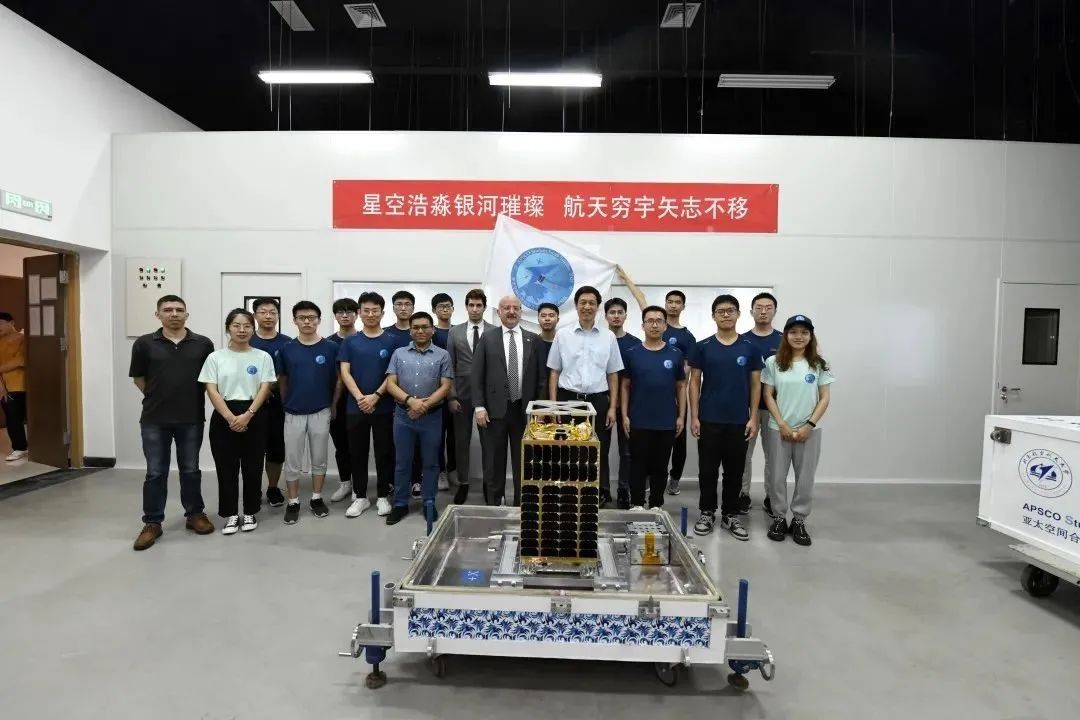 2021年9月16日上午,SSS-1小卫星在北航举行出征仪式,北航校长徐惠彬院士、亚太空间合作组织副秘书长Ferhat出席