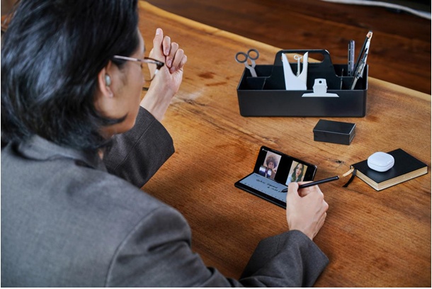 基于折叠屏设计以及先进隐形铰链技术的应用,三星Z Fold3还支持诸多直屏手机所不具备的交互体验,如多角度旋停,无需借助手机支架就可以从容应对各种使用场景需要。举例来说,商务人士在参加视频会议时,多角度旋停再加上自适应分屏技术的配合,直接打开三星Z Fold3就可以边参加会议,边用S Pen记录笔记。无形之中,为工作带来便捷。