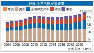 【环球时报综合报道】瑞典斯德哥尔摩国际和平研究所(SIPRI)25日发布的报告显示,2021年全球军费开支增长0.7%,突破2万亿美元。分析认为,这个趋势会继续下去,尤其是欧洲。