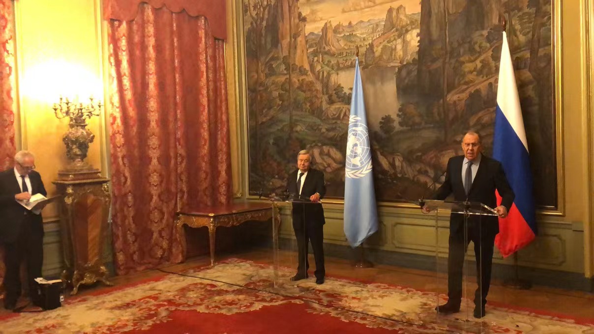联合国秘书长与俄外长联合召开新闻发布会