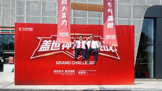 为进一步测试大自然钢扣的拉力,大自然家居集团执行董事兼,顾问佘建彬先生,大自然家居集团营销副总裁孙震宇先生,两位重量级领导,也亲自上去体验了一把,大自然钢扣仍旧安然无恙。