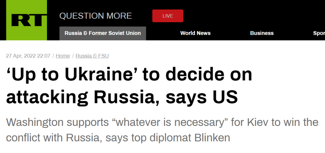 RT:美国称由乌克兰自己决定是否攻击俄罗斯