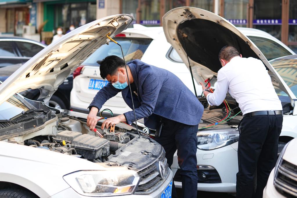 4月28日,长春市民为汽车“对火”通电。新华社记者 许畅 摄外卖忙