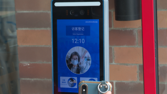 超市客服经理徐寅草介绍,在超市外围,工作人员首先会要求查验前来购物居民的出行证,以及核酸或抗原阴性证明,合格后才能进入排队通道,同时还在超市门口安装了“数字哨兵”,居民需测温并且经机器检验合格后,方可进入超市。