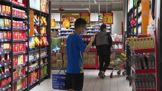 “除了对公共区域每天进行三次消杀以外,我们还会对所有的正在使用的购物车进行循环消杀,超市内部的工作人员除了每日核酸检测符合要求外,都要穿着防护服为大家服务。同时,为了更好的保障卫生安全,我们超市也对顾客做了限流。”徐寅草介绍道。