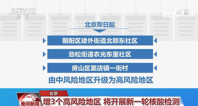北京即日起将朝阳区建外街道北郎东社区、劲松街道农光东里社区、房山区窦店镇一街村由中风险地区升级为高风险地区,将朝阳区十八里店乡周家庄村由低风险地区升级为中风险地区。截至目前,全市共有高风险地区10个,中风险地区26个,并将继续开展新一轮核酸检测工作。