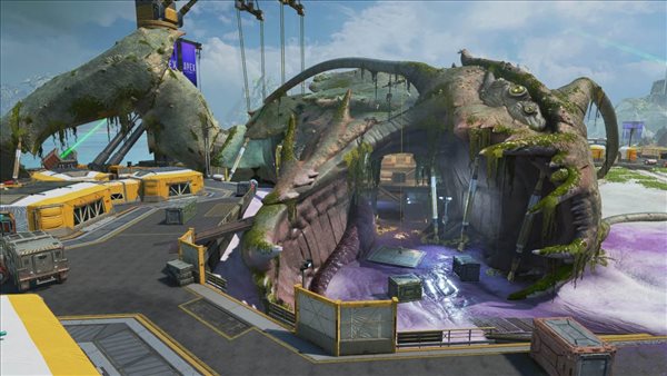 1、增加兴趣点“海怪”,这是一个以被冲到海岸上的海怪尸体构筑的位置“陨落野兽”,这也是《Apex英雄》首次以有机生物为蓝本搭建的场景,和以往我们熟悉的人造建筑物非常不同。