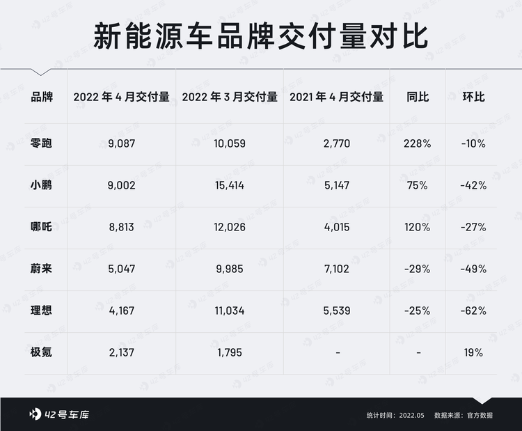 新势力第一梯队的三位选手在 4 月遭遇了大幅度的交付量下滑,虽然大家面对的大背景相同,但背景之下疫情对各自节奏的影响却又有着各自的特殊性。