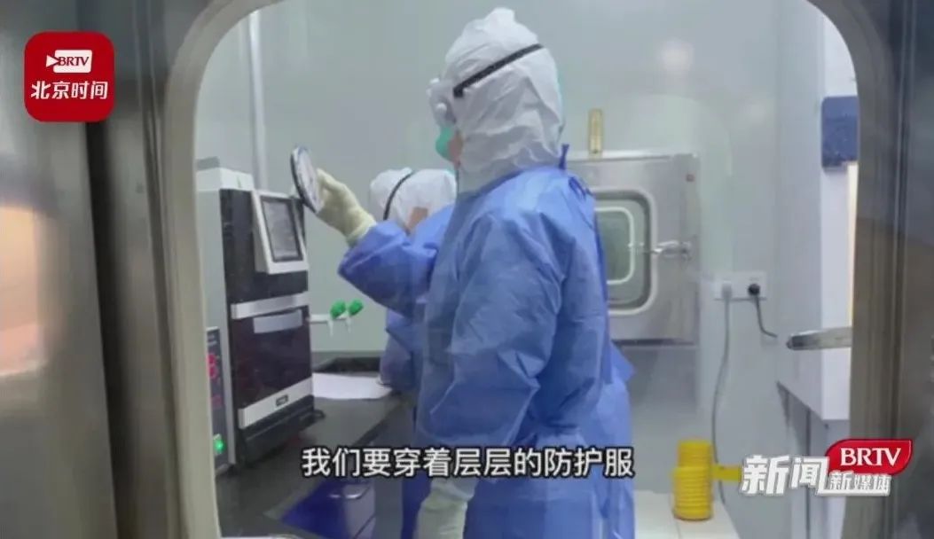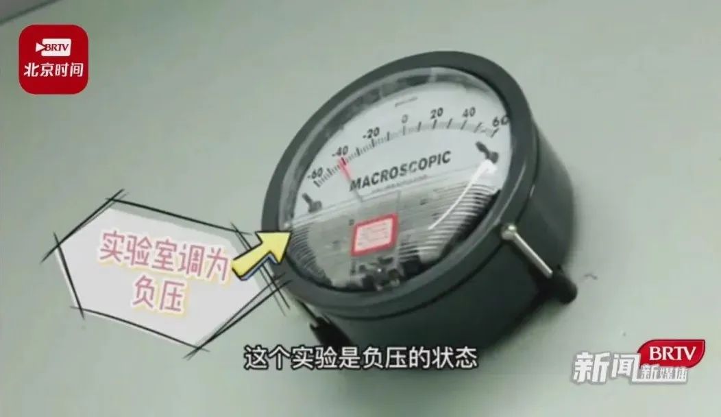 样本的提取就在这间屋子里,所以说可能发生的风险应该主要是在这个房间产生的,我们进这个房间是要穿三级防护的;这个实验室是负压的状态,这样的话就能够保证我们自身的安全;这两个门的是连锁装置,当我把这一扇门打开的时候,另一扇门是打不开的,这样就可以保证我们里面的空气和外界是不相通的。