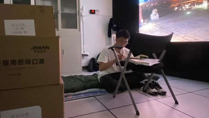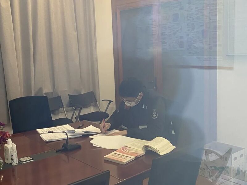 面临“两线作战”,领导和同事们都尽量抽调其他人手去一线工作,尽可能想要给蒋家杰更多复习时间。但蒋家杰却让大家宽心,前期调阅监控、拨打电话进行流调工作,后期护送疾控人员,进入封控区,协助消杀工作及环境采样。每一项,他都没有落下,特殊时期就在监控室找了一个安静的角落看书。