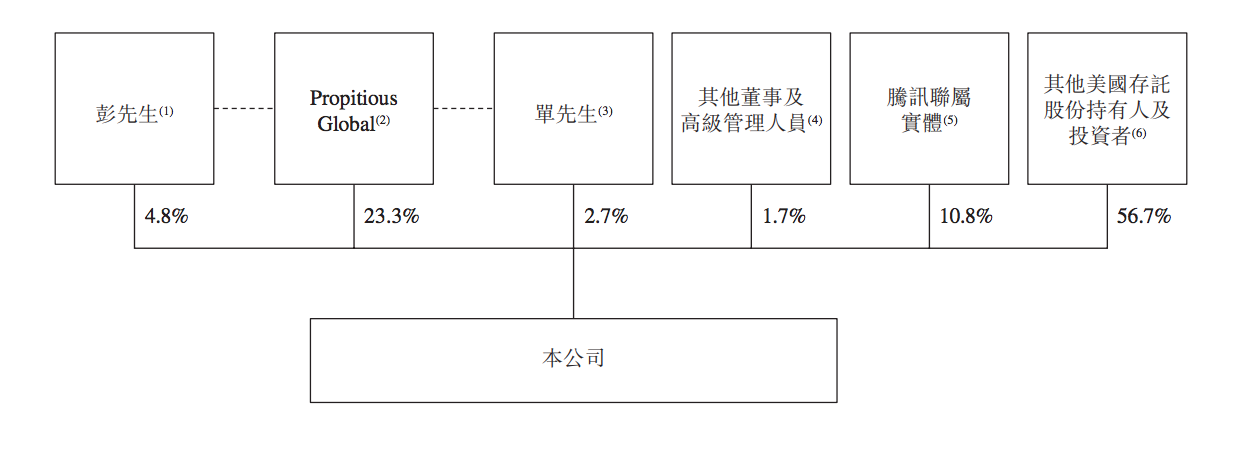 根据贝壳披露的股权架构,介绍上市完成后,贝壳董事长兼CEO彭永东持股占比4.8%,联合创始人兼执行董事单一刚持股2.7%。此外,Propitious Global Holdings Limited持股比例为23.3%,Propitious Global Holdings Limited由Z&Z Trust(Z&Z信托)最终控制,其受益人为贝壳创始人及永远的荣誉董事长左晖的直系亲属。腾讯则持股10.8%。