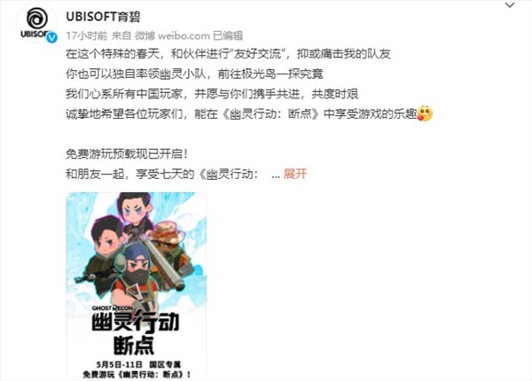 和朋友一起,享受七天的《幽灵行动:断点》国区专属免费游玩!”