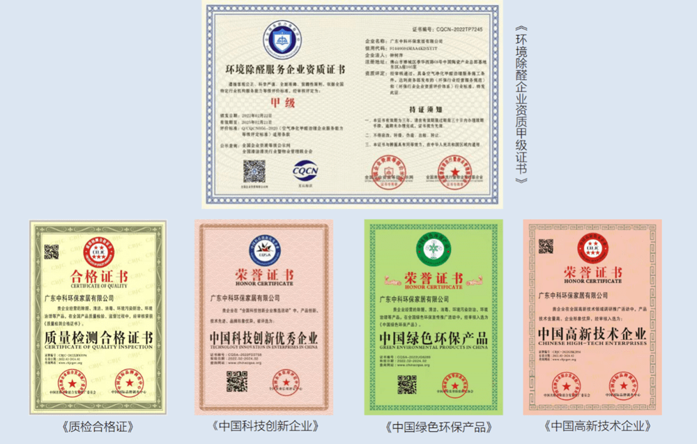 3.公司荣获除醛服务企业,证书,科技创新企业等多项荣誉;