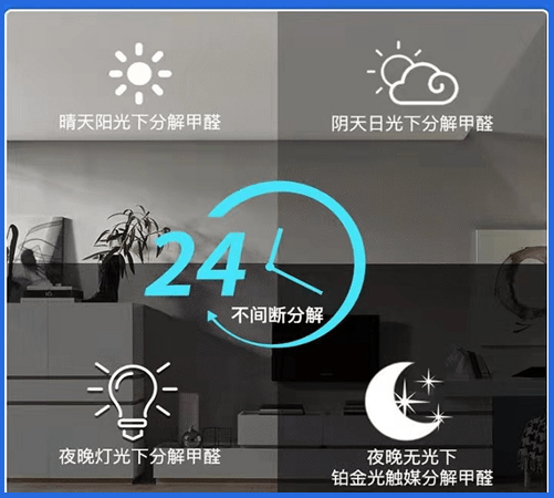 而另外一种就是我们今天要介绍的改性复合酶除醛,它结合了光触媒、生物酶等传统甲醛捕捉、分解的物理和化学特性,通过科学的配比、THZ光学改性复合而成。在该技术支持下的除醛产品,多种除醛机理协同生效,不论光照如何均能快速、长效的实现去除甲醛的目的。