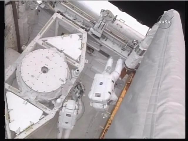 美国国家航空航天局2009年5月15日发布的照片显示,“阿特兰蒂斯”号宇航员进行太空行走维护哈勃望远镜。图片来源:新华社/法新