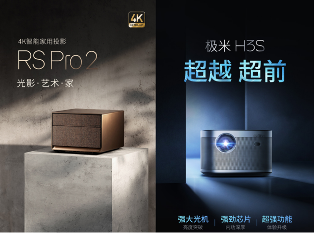 极米的产品矩阵十分清晰,不同的字母分类对应不同的价格定位,比如,以H开头的系列是旗舰机型(4500-6000元价格)、以Z开头的系列是均衡平价的机型(2000-4000元价格)、RS系列则是主打高端的机型(8000元以上);此外针对不同功能,还有极米Play便携系列(1000-5000元不等),以及主打年轻化、潮酷的MOVIN(1699元起)和在日本市场推出的阿拉丁智能投影灯等创新产品系列。