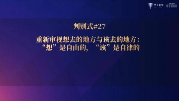 第二十七个判别式是另外一个很重要的事情——重新审视想去的地方和该去的地方,想是自由的,该是自律的。