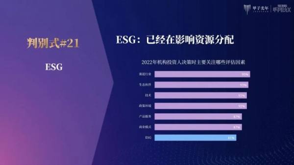 第二就是ESG,ESG从过去的一个定性的概念,在今天已经变成了一个逐渐可被量化的一个指标,甚至已经在影响很多的资金和资源的分配,比如贷款的资源,投资的资源,政策补助的资源等等,一个公司的ESG的成色很大程度上会影响它在当今时代当中所获得的资源分配权。