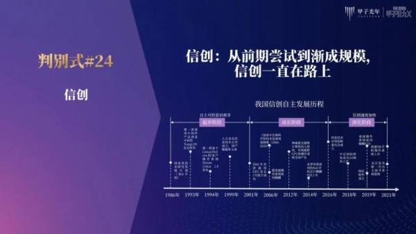 第二十四条是另外一个判别式,就是信创,信创从过去前期的尝试到如今的渐成规模,可以说这几年信创一直在路上,我们会在越来越多的实体经济行业当中感受到我们的信创成色的提升。