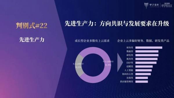 比如说当我们谈到SaaS的时候,过去我们会倾向于谈垂直的还是通用的,或者是工具类的还是商事服务类的,但是今年我们会看到非常非常多的企业服务的公司或者是SaaS,他们的分类体系和自我的定位开始突破过去这个赛道分类的标准,我们很难再用过去的垂直、通用来去衡量一个公司的类型。