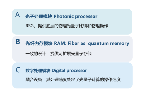 这样看来:PsiQuantum的这一架构与玻色量子提出的“天工光量子计算架构”模块化架构可谓殊途同归:RSG等设备对应的就是光子处理模块部分,而融合设备等对应的是数字处理模块,最后都采用了时分复用的光纤作为内存: