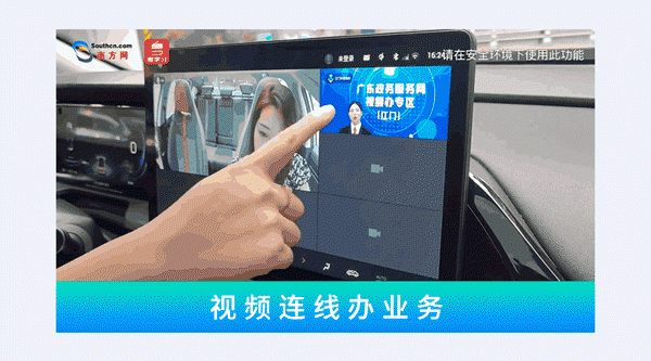 群众在车内点击“粤优行”政务服务,进入平台云上大厅,即可实现与政务服务大厅、办事窗口实时视频连线,在云端一对一办理业务,让政务服务随手可得。此外,还提供公积金、社保、粤财扶助、志愿服务、12345在线咨询投诉等功能。