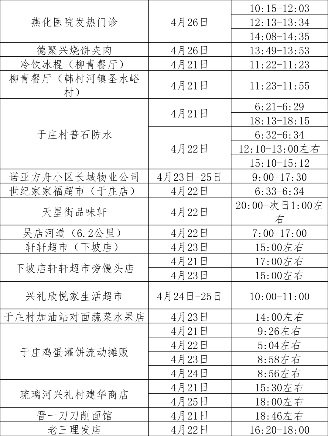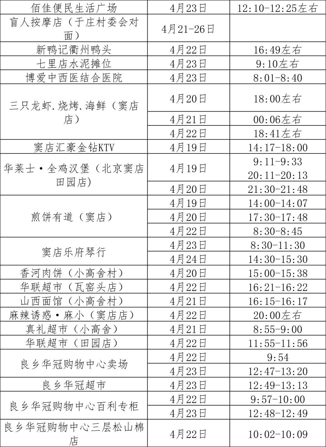 在此提醒广大市民朋友,凡与以下行程有时空交集人员或接到健康宝弹窗提示人员,请立即主动向社区、单位、宾馆等报告,配合做好集中隔离、居家隔离、健康监测、核酸检测等各项防控措施。