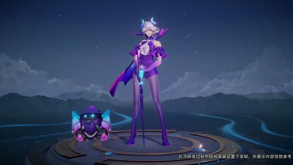 为了与米莱狄的魔女身份契合,形象的整体设计将神秘感强烈的紫色与代表魔法气质的蓝色相结合,魔杖则使用了树枝枝丫的元素来呼应故事发生地——黑森林,同时强化了森林魔女的魔幻感受。