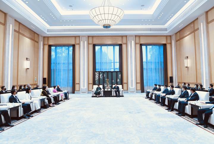 5月10日下午,省委书记袁家军在杭州会见了中国国民党前主席、中华青雁和平教育基金会董事长洪秀柱一行。 浙江新闻客户端记者 胡元勇 摄